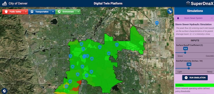 SuperDNA 3D Lab ran a demo project for stormwater management to illustrate a broader shift in how cities approach simulation. A city may run a hydraulic model for a 100-year rainfall event to guide infrastructure investments, but conditions change. Rainfall projections evolve, development alters runoff, and environmental assumptions shift.